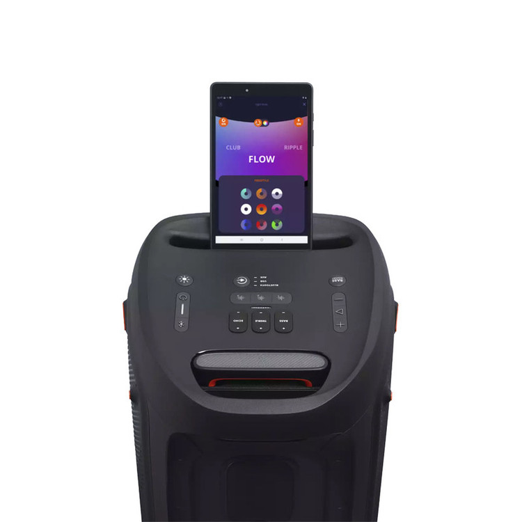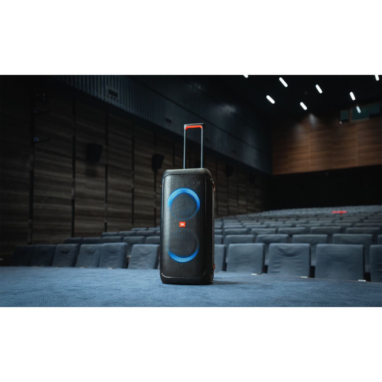 اسپیکر بلوتوثی پارتی باکس 310 یکی از جدیدترین محصولات کمپانی جی بی ال است که با مجهز بودن به درایورهای حرفهای، برای استفاده در محیطهای بزرگ عالی عمل میکند. پارتی باکس JBL 310 با ویژگیهای مثبتی چون قابلیت اتصال به بلوتوث، رقص نور خیرهکننده هماهنگ با موسیقی، باتری پرقدرت و قابلیت حمل آسان در میدان بسیار خوش درخشیده است. با توان خروجی بالا و باس قویای که این اسپیکر دارد، موسیقی را با کیفیت بالا پخش میکند. این اسپیکر حرفهای پرتابل از اتصالات مختلفی مانند بلوتوث، پورت USBو ورودی AUX پشتیبانی میکند و قابلیت کار هم با شبکه برق و هم با باتری را داراست. ناگفته نماند که قیمت جی بی ال ۳۱۰ با داشتن این ویژگیها بسیار مناسب است. عملکرد اسپیکر بلوتوثی جی بی ال 310 در انواع موسیقی کمنظیر است. با وجود قابلیت تنظیمات EQ متعددی هم که در آن وجود دارد، تجربه فوقالعاده از پخش موسیقی را برای شما فراهم میکند. باتری اسپیکر پارتی باکس ۳۱۰ عملکرد فوقالعادهای دارد به طوری که طی 3 ساعت شارژ شده و میتواند تا ۱۷ ساعت موسیقی پخش کند. البته میزان مصرف باتری این محصول به نوع موسیقی و بلندی حجم صدا هم بستگی دارد. نکته جالب اینجاست که این بلندگو به اسپیکر مشابه هم وصل میشود و با این کار حجم صدای موسیقی بیشتر شده و محدودهی پوشش صدا افزایش مییابد. شرکت سازنده در اسپیکر PartyBox 310 پورت ورودی میکروفون هم در نظر گرفته تا برای اجرا یا گفتوگو هیچ مشکلی نداشته باشید. علاوه بر ورودی میکروفون، دکمه تنظیم ساز گیتار هم در این بلندگو تعبیه شده تا برای اجرا زنده هم بسیار کاربردی باشد.