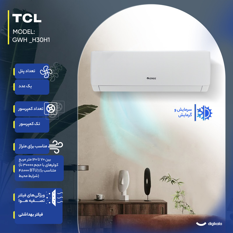 کولر گازی اسپلیت دیواری 30000 اینورتر گری مدل GWH _H30H1