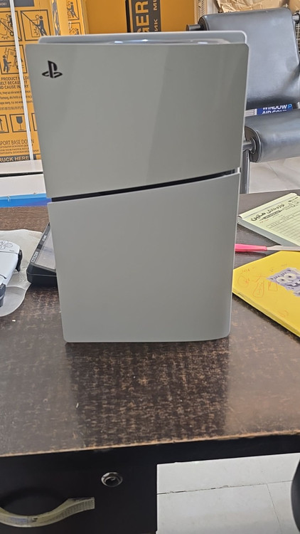 کنسول PlayStation 5 Slim (نسخه دیسکخور) یک نسخه کوچکتر و بهینهشده از کنسول PS5 اصلی است. این مدل دارای یک درایو بلوری 4K برای اجرای بازیهای فیزیکی، حافظه داخلی 1 ترابایت، و طراحی مدرنتری است. همچنین، صدای فن کمتری دارد و خنککننده بهتری نسبت به نسخه قبلی ارائه میدهد.